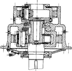 1—輸入軸 2—太陽(yáng)輪 3—輸入行星架 4—潤(rùn)滑管路 5—機(jī)體 6—后機(jī)蓋 7—輸出行星架