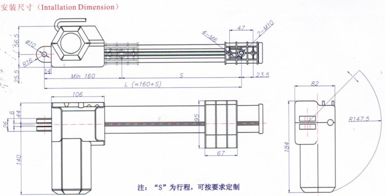 最長安裝距離:L=160mm+S
