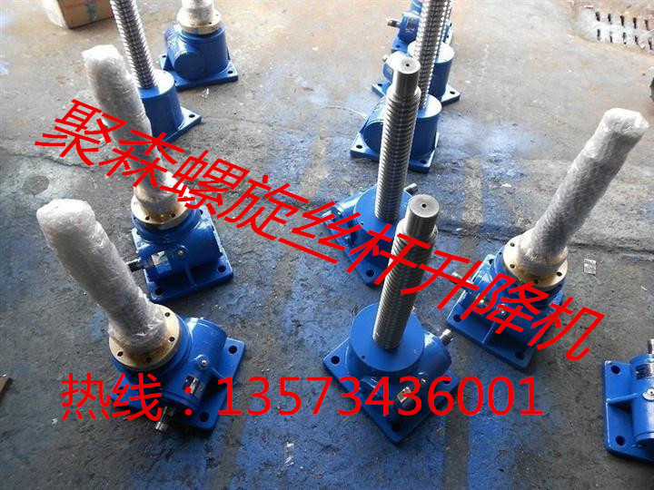 升降機(jī)按結(jié)構(gòu)型式分為:1型-絲杠同時(shí)作旋轉(zhuǎn)運(yùn)動(dòng)和軸向移動(dòng);2型-絲杠作旋轉(zhuǎn)運(yùn)動(dòng)。絲杠上的螺母作軸向移動(dòng)。