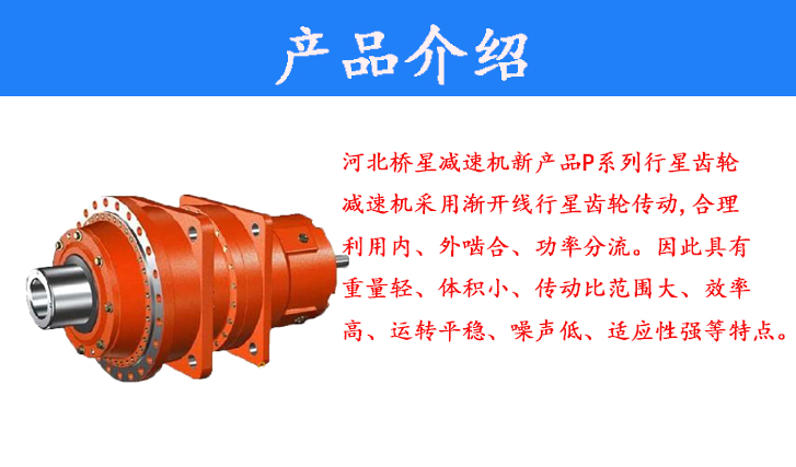 河北橋星減速機新產品P系列行星齒輪減速機采用漸開線行星齒輪傳動,合理利用內、外嚙合、功率分流。因此具有重量輕、體積小、傳動比范圍大、效率高、運轉平穩(wěn)、噪聲低、適應性強等特點。