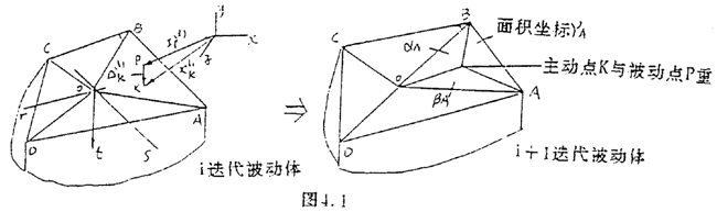 式中△up(i+1), △qk(i+1)表示第i+1迭代步P點(diǎn)及R點(diǎn)位移增量,由式(4.1.11)(4.1.12)得