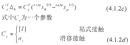 上式為三維粘式接觸的位移協(xié)調(diào)條件增量形式。