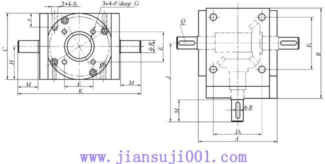 | 2 | 傳動比:N或L | N:普通速比,可省略不標, 每輸入1圈升降1㎜ | L:慢速比,需標注, 每輸入1圈升降0.25㎜ |